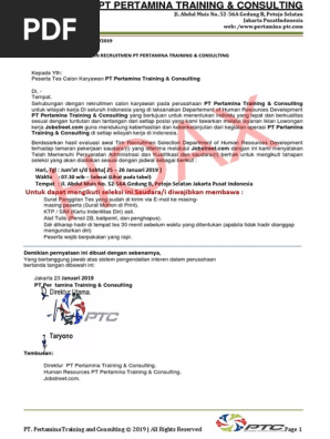 Surat Undangan Interview Pt Pertamina Training Consulting Hoax Pdf Pdf